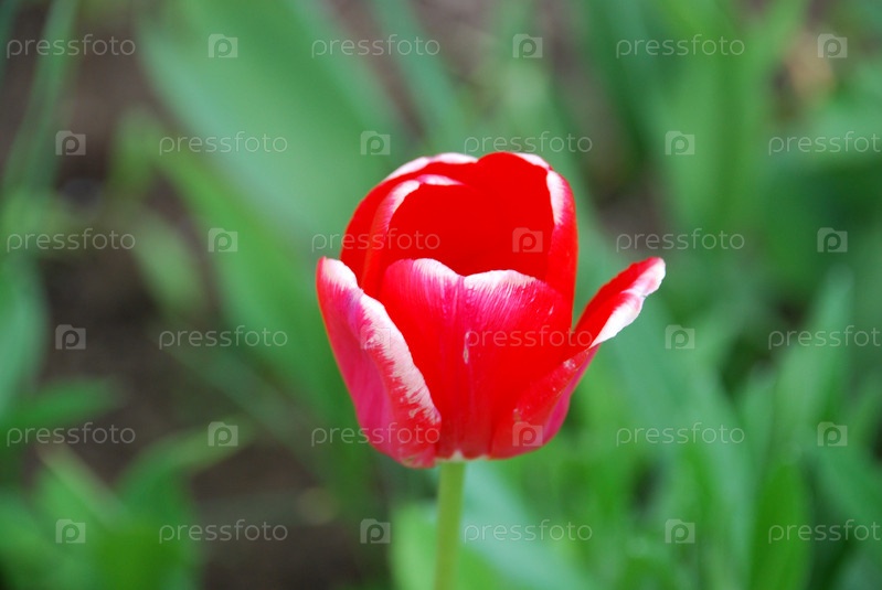 Бутон красно-белого тюльпана