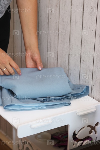 Женщина рассматривает элементы классического блейзера. Крупный план