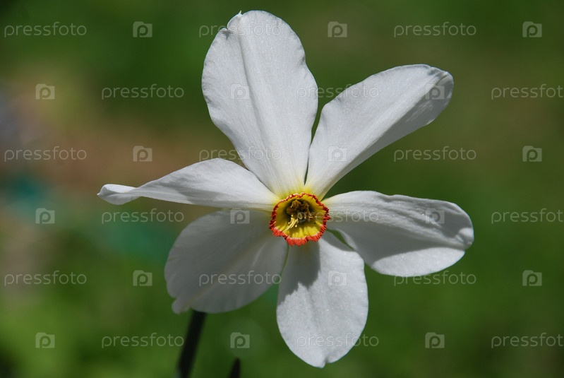Белый нарцисс на клумбе