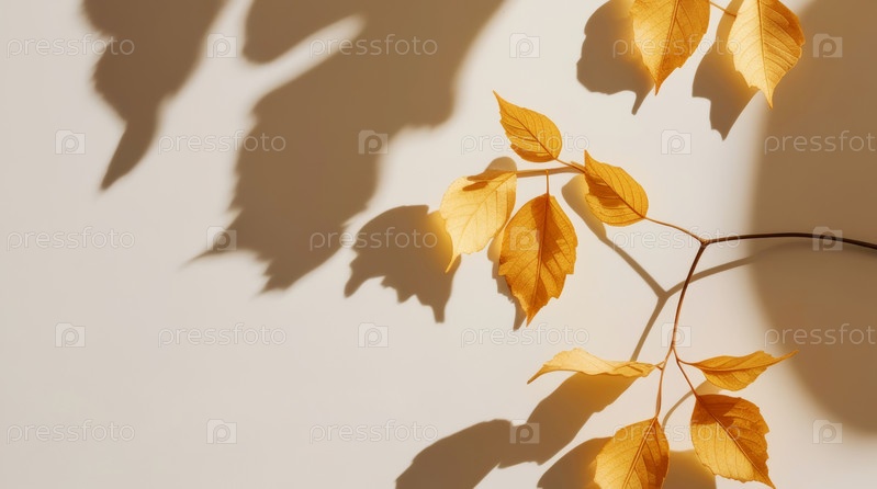 Золотистые листья отбрасывают мягкие тени на светлом фоне, создавая уютную и гармоничную атмосферу