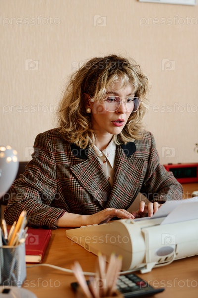 Работа за столом с ретро-пишущей машиной и разбросанными бумагами