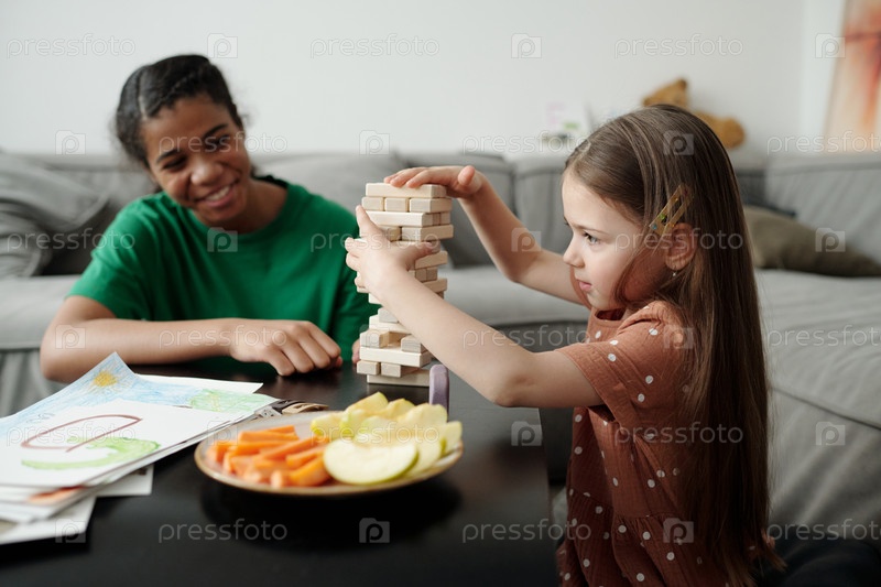 Очаровательная маленькая девочка строит башню