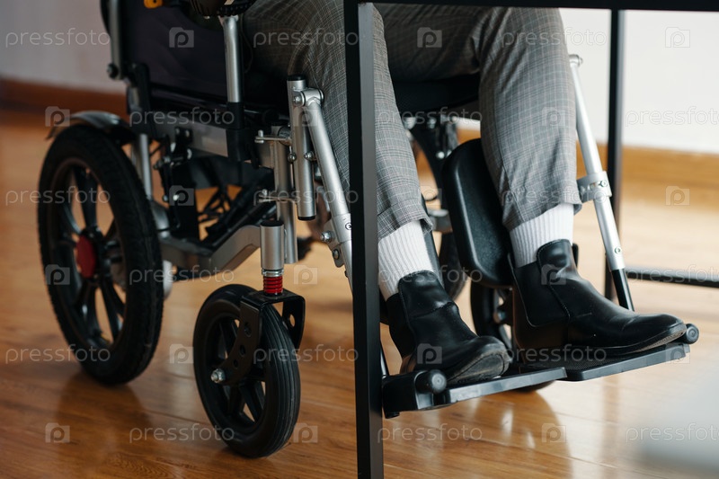 Бизнесмен, сидящий в инвалидной коляске в офисе