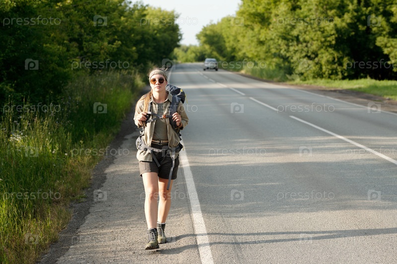 Рюкзак, движущийся вдоль широкой магистрали