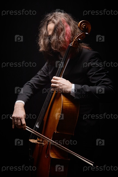 Инструменталист по виолончели, исполняющий классическую музыку в студии