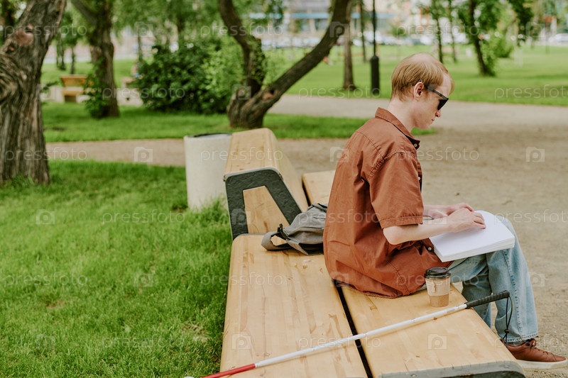Человек, читающий книгу на скамейке