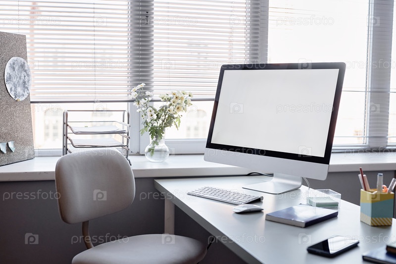 Пустой монитор в офисе Рабочее место с солнечным светом