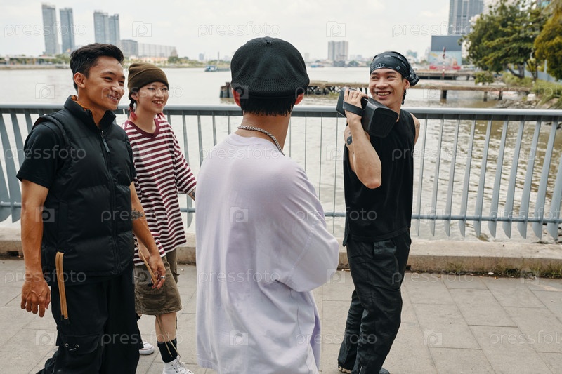 Наслаждайтесь случайной прогулкой вдоль набережной с друзьями