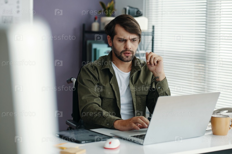 Бизнесмен, работающий онлайн на ноутбуке в офисе