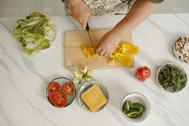 Женщина, режущая перцы на кухне