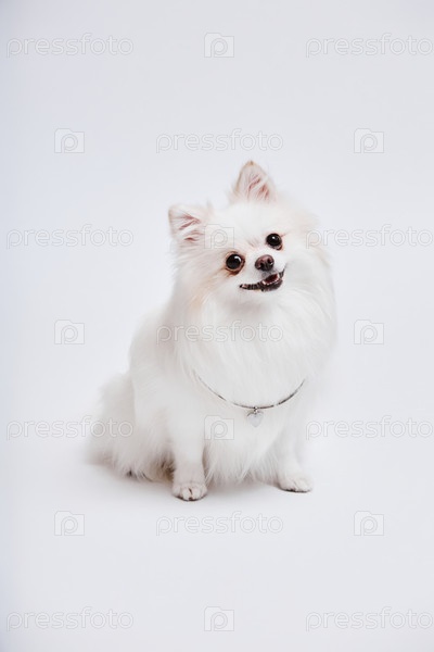 Шпиц с темными глазами в стальной игрушечной ошейнике
