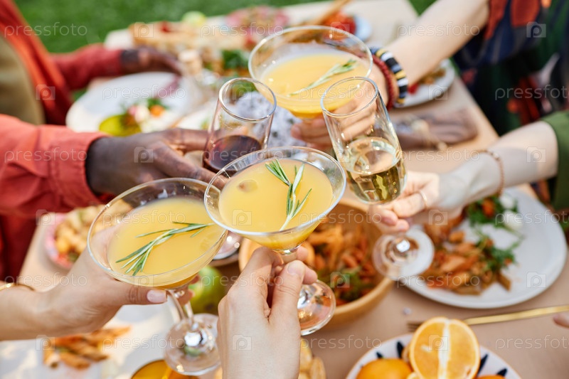 Празднование встречи на открытом воздухе с напитками и друзьями