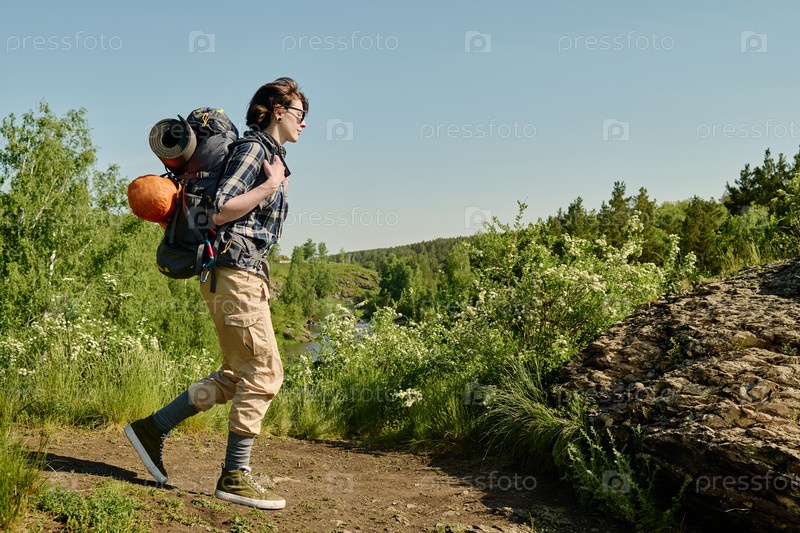 Молодая женщина-путешественница с рюкзаком