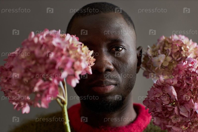 Человек с розовыми цветами Черный