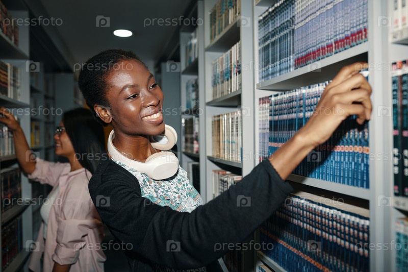 Люди, ищущие книги в библиотеке
