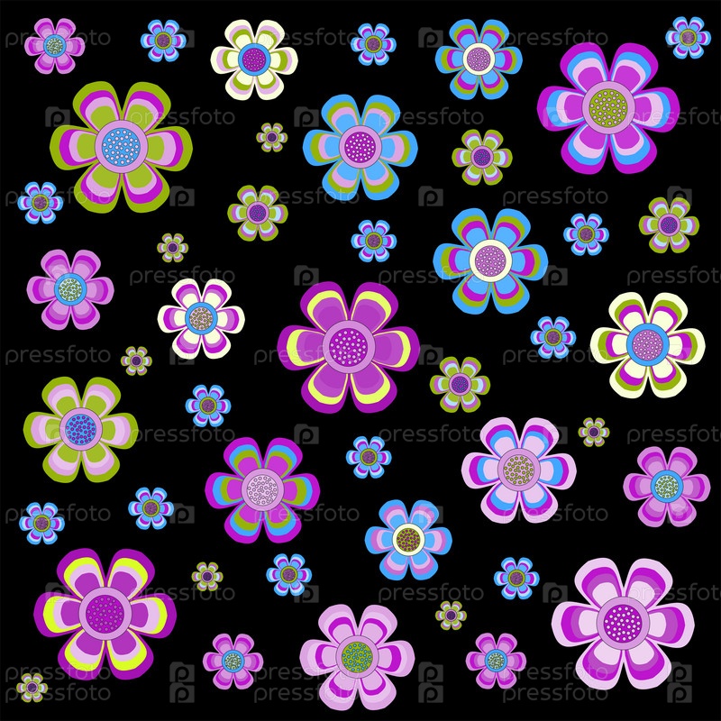 Набор цветов различных форм на черном фоне