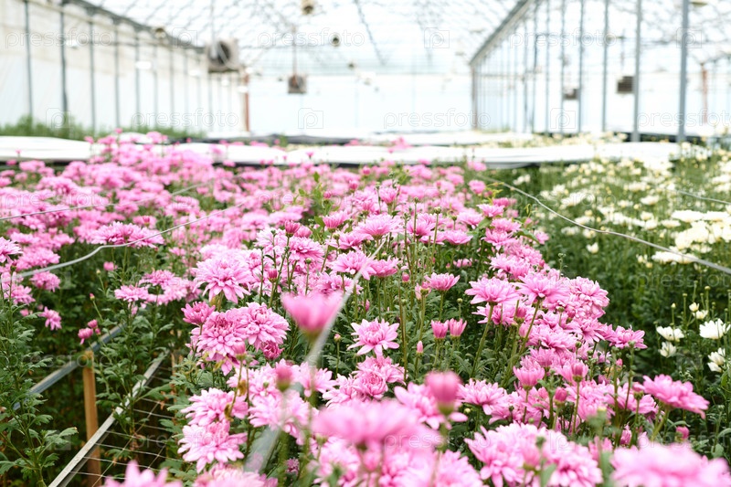 Розовые цветы в теплице на плантации