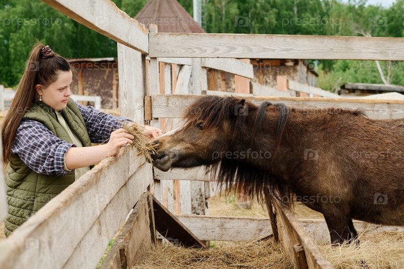 Кормление лошади в рустической сельской местности