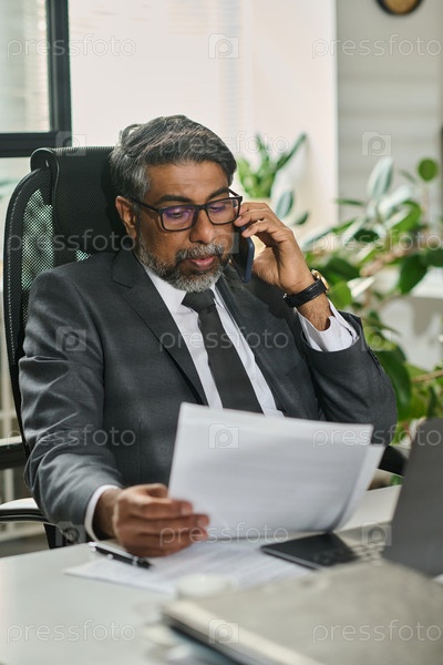 Генеральный директор разговаривает с бизнес-партнером по телефону
