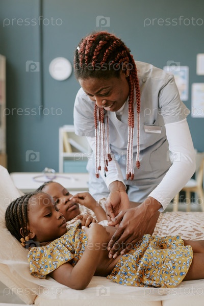 Медсестра лечит маленьких детей в медицинском учреждении