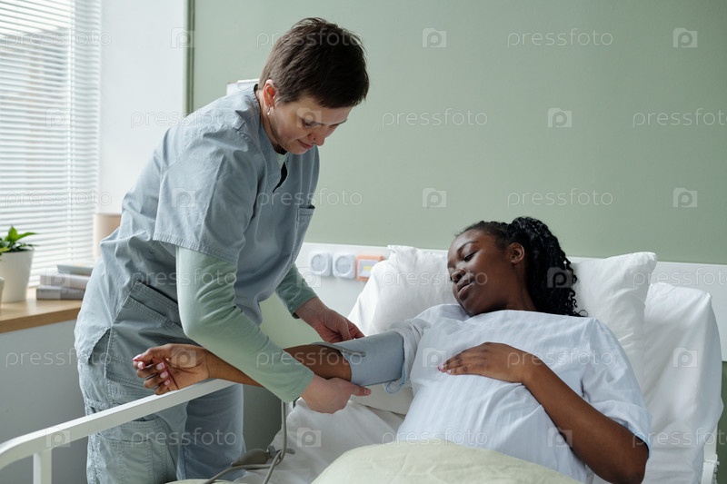 Медсестра помогает восстанавливающемуся пациенту в больничной комнате