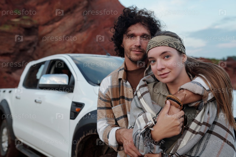 Парень в фланеле обнимает свою девушку