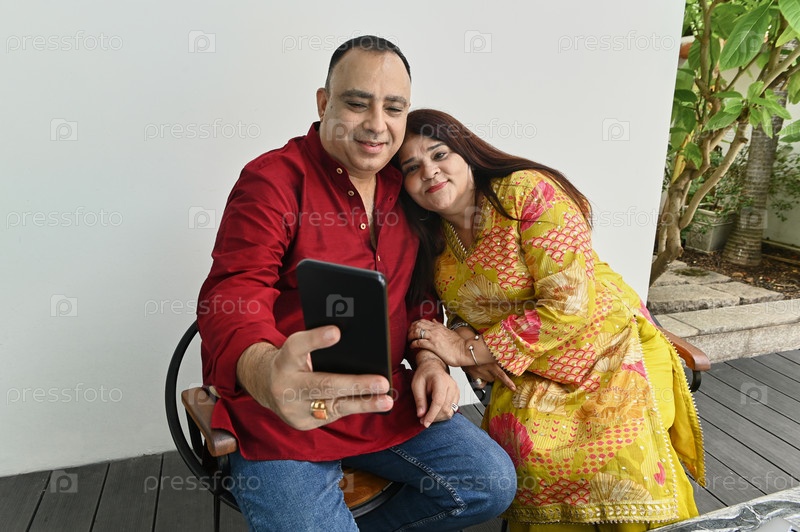 Индийская пара делает селфи на смартфоне