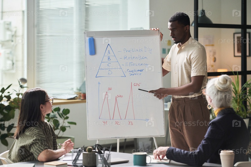 Афроамериканский менеджер, представляющий барграф в конференц-зале
