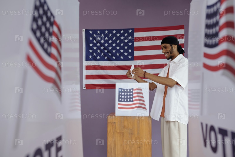 Мужчина бросает конверт в коробку, чтобы проголосовать