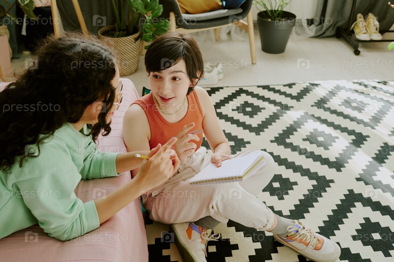 Разговоры и письменные заметки на геометрическом черно-белом ковре