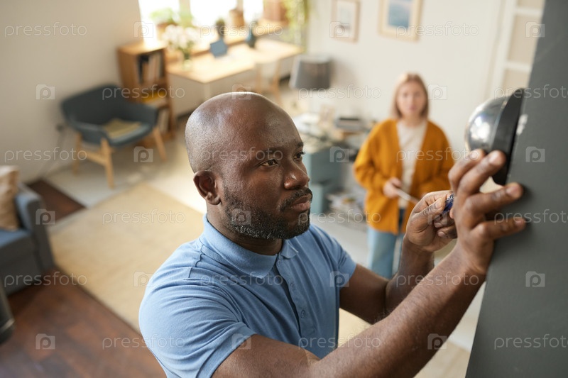 Чернокожий мужчина занимается обслуживанием дома