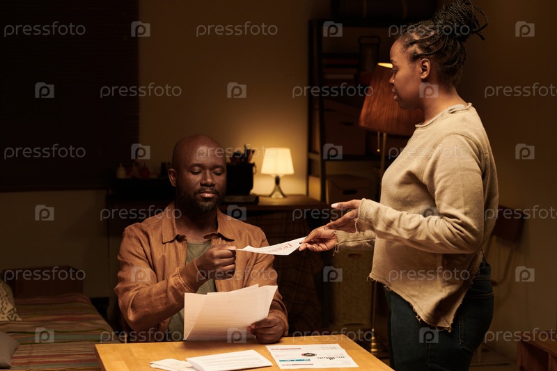 Женщина передает своему мужу неоплаченный счет