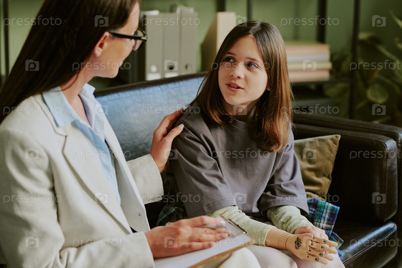 Обсуждение прогресса в терапевтической сессии с протезируемой конечностью