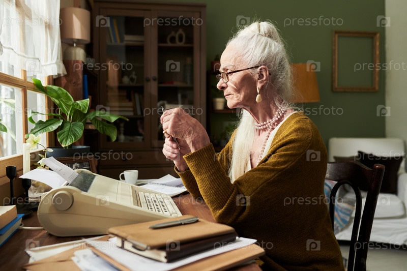 Женщина, печатающая на старинной пишущей машинке в уютной комнате старшеклассника