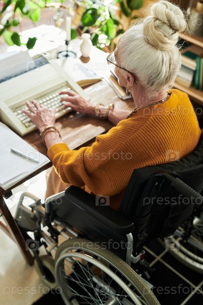 Старшая женщина, использующая пишущую машину во время работы в домашнем офисе