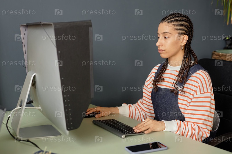Компьютерное редактирование видео или картин Woman using Computer Editing Video Or Pictures