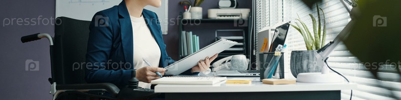 Женщина-инвалид, работающая с документами