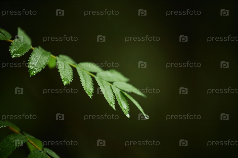 Поточенные зелеными листьями, висящими на ветвях росы