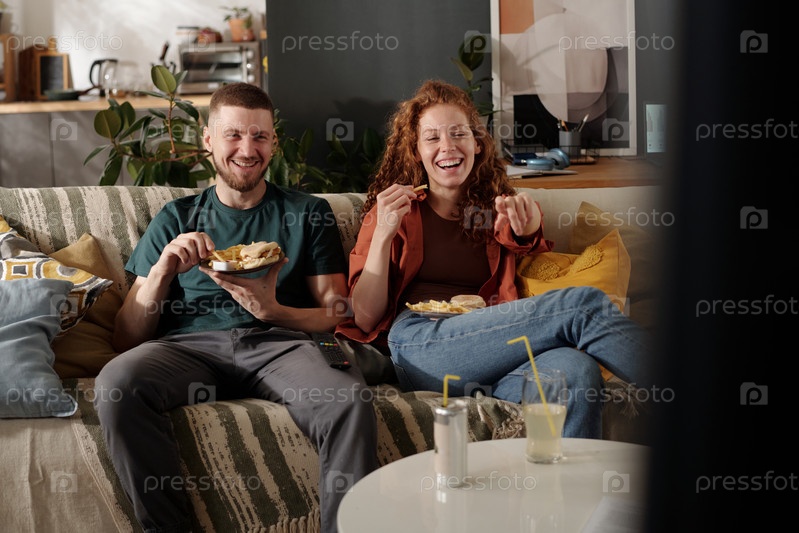 Едят и смеются перед телевизором