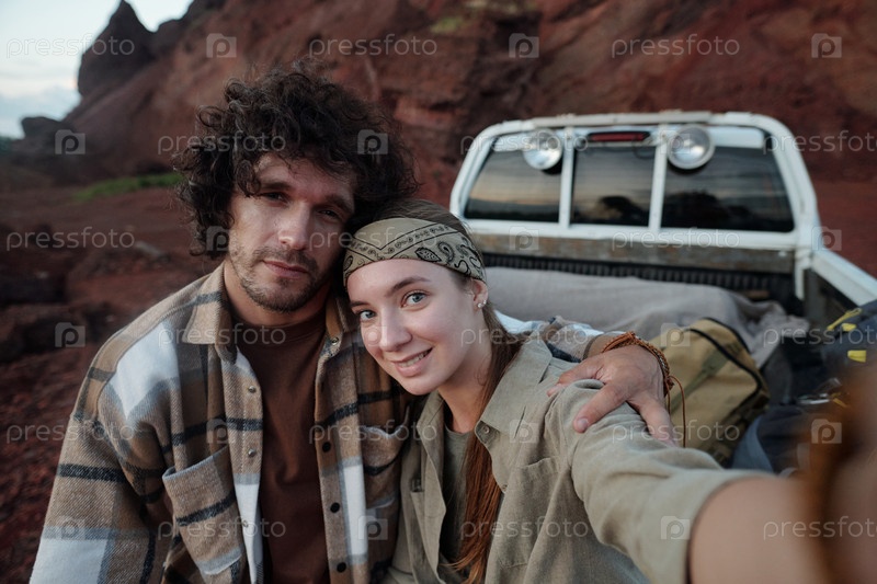 Путешественники делают селфи на смартфоне