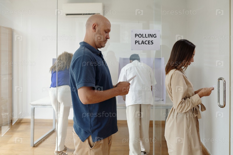 Люди с бюллетенем, стоящие в очереди