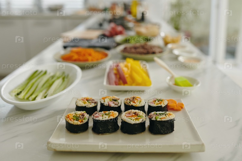 Домашний корейский кимбап на блюде