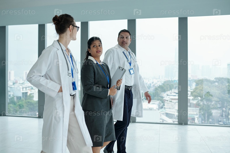 Медицинские работники разговаривают с менеджером