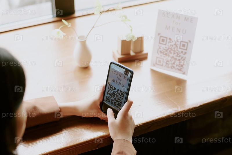 Сканирование меню QR-кода в кофейне