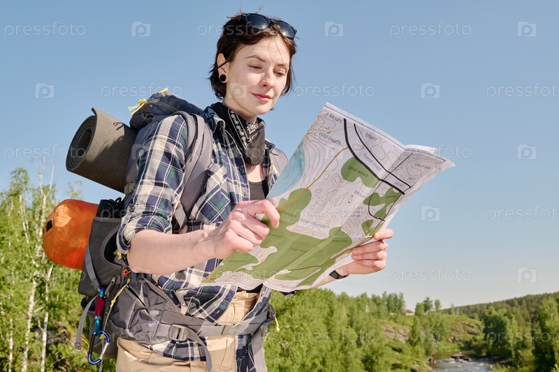 Активный женский кемпер с бумажной картой