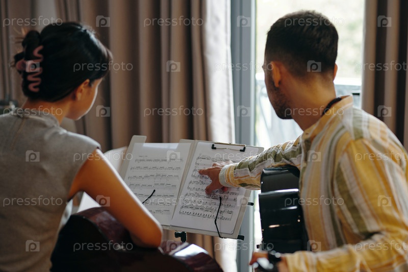 Обсуждение и просмотр музыкальных нот во время практики