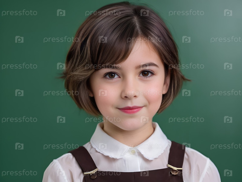 Портрет улыбающегося ребенка на зеленом фоне