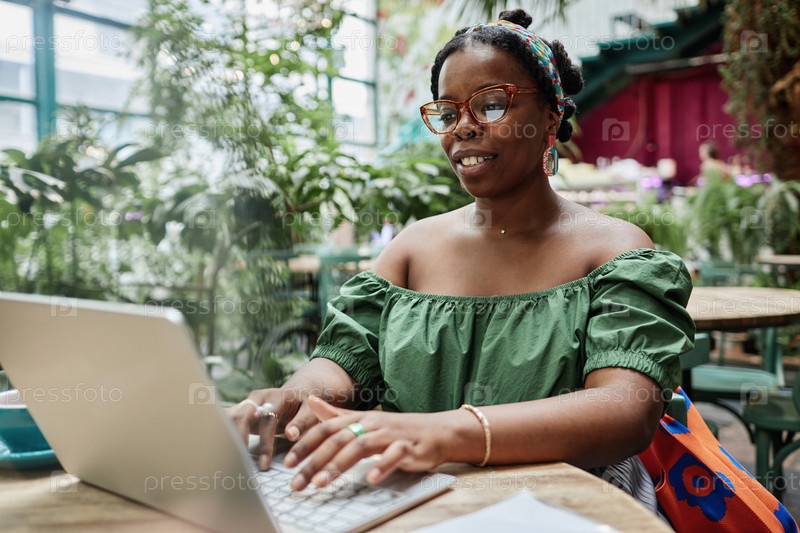 Молодая афроамериканская женщина, использующая ноутбук