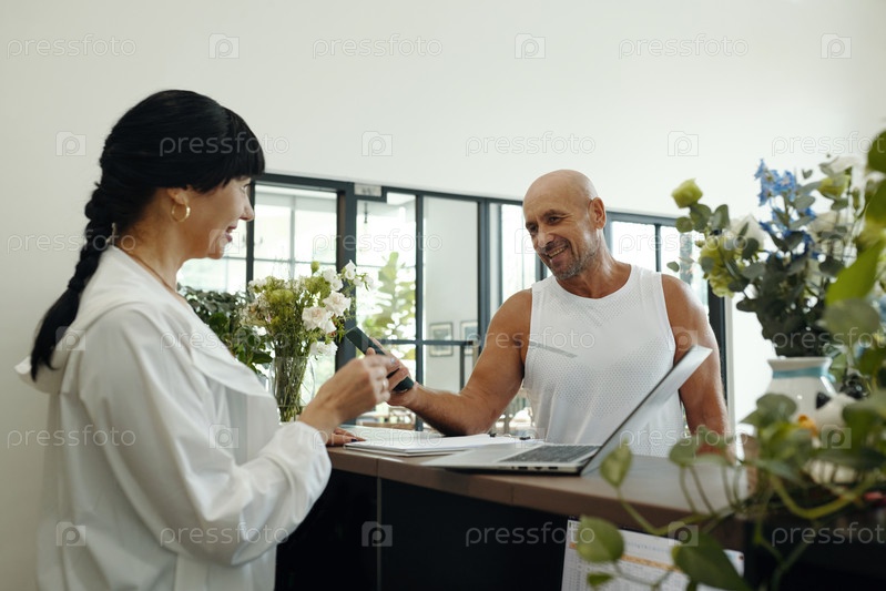 Администратор, работающий с клиентом в оздоровительном клубе