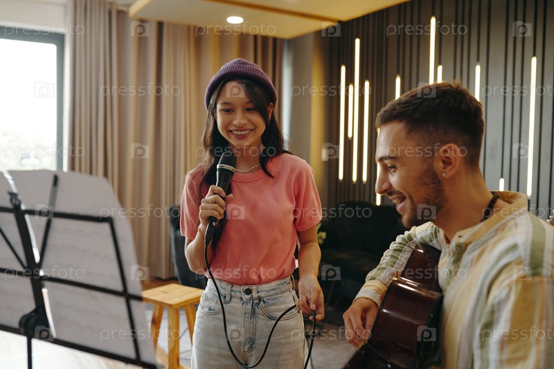 Пение с гитарой в современном пространстве гостиной